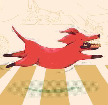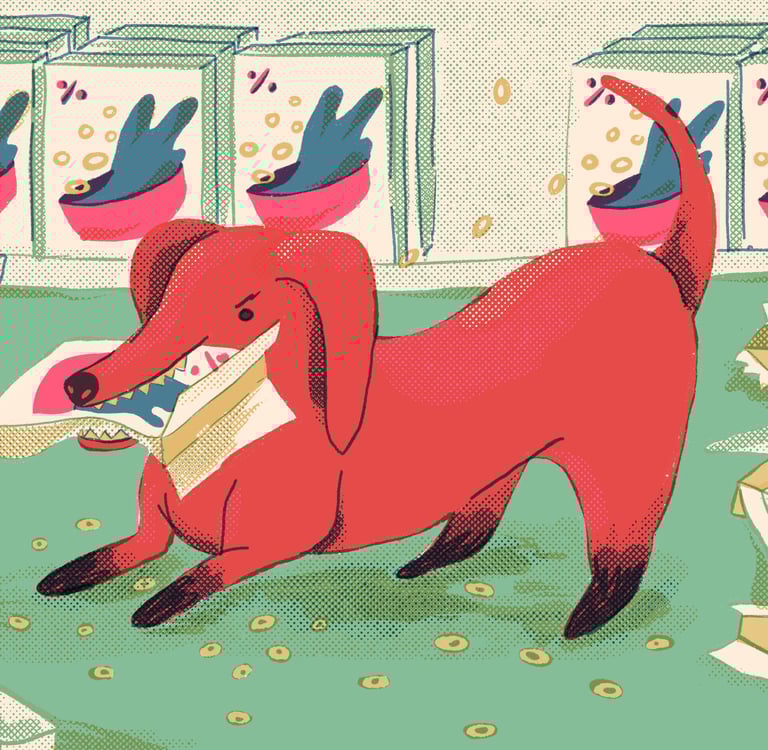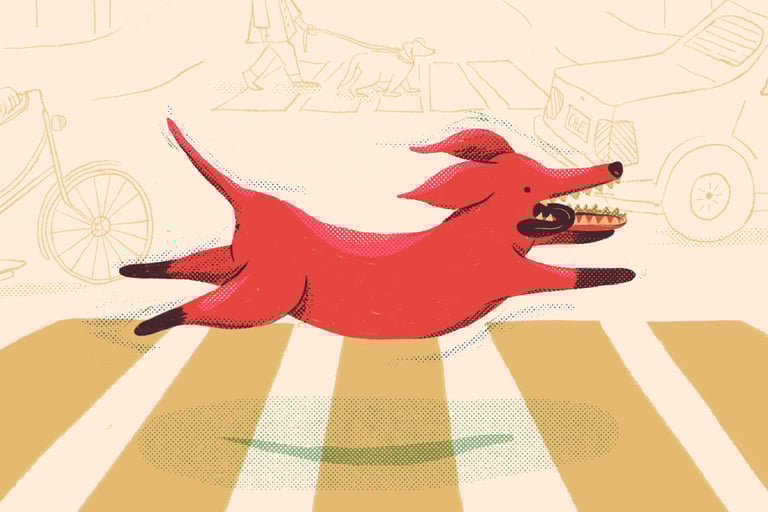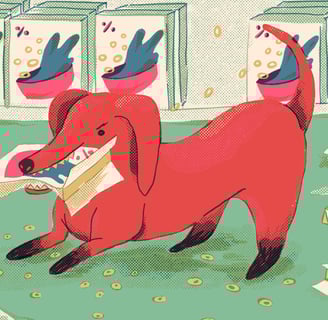 Este perrito no pudo resistir los encantos de una buena publicidad.