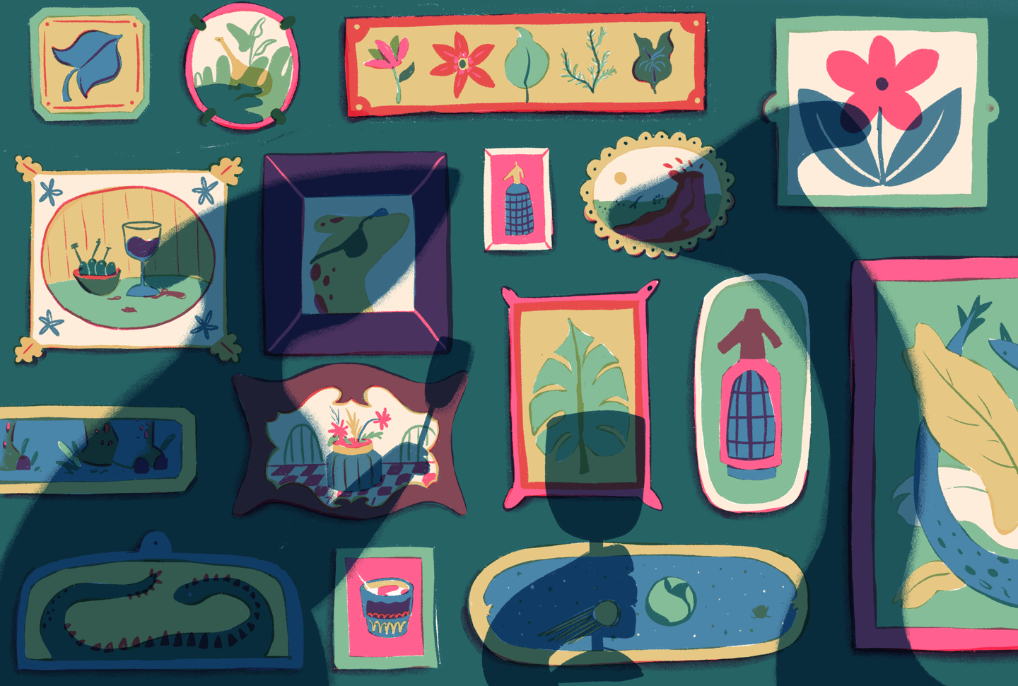 Dino, Sifón y plantas es un ejercicio personal que busca crear un universo donde estos tres elementos particulares existen y se relacionan de mil formas distintas. Las posibilidades son infinitas.