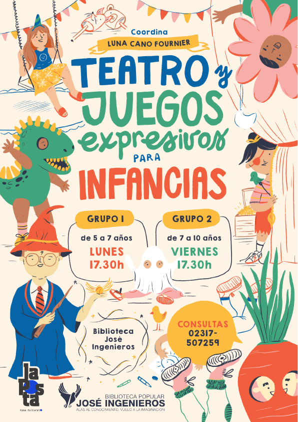 Diseño, composición e Ilustraciones de personajes para clases de teatro de Luna Cano Fournier.